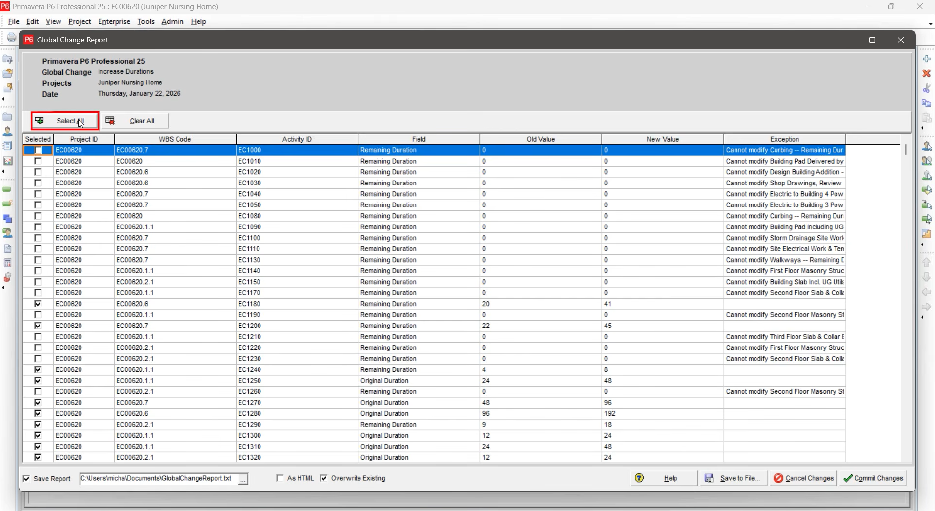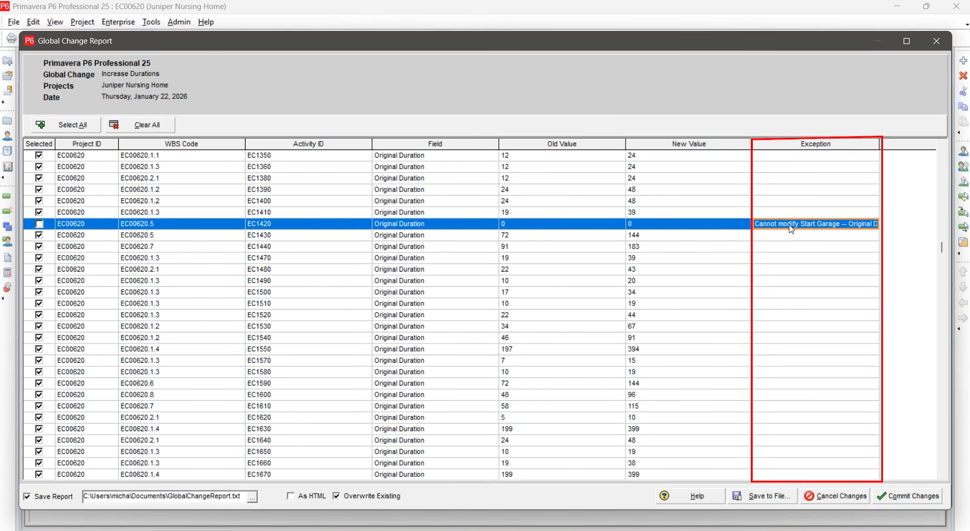 Global Change has always been a powerful tool for batch-updating activities, but the process could be a bit all-or-nothing. Now, you can pick and choose exactly which activities to apply your changes to. This means more control and less risk of accidental updates. Plus, the interface gives you feedback if a change can’t be applied (for example, trying to increase the duration of a milestone). It’s a small but meaningful quality-of-life improvement.